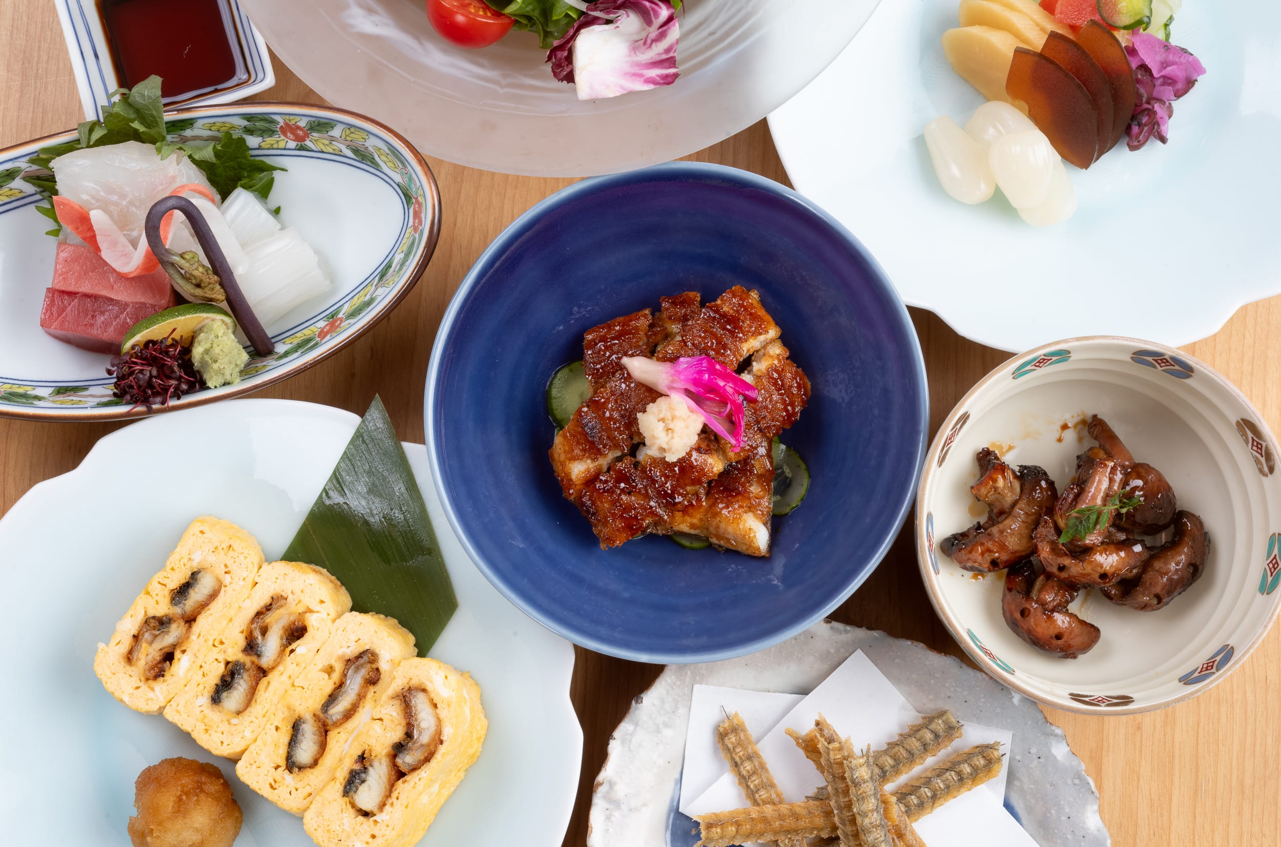 うなぎだけでなく日本料理にもこだわっております。一品料理も充実しており、日本料理の職人が毎朝市場へ足を運び、目利きを活かして旬の厳選した食材のみを仕入れております。素材の味を最大限に引き出し、できたての美味しさをお客様にお届けいたします。