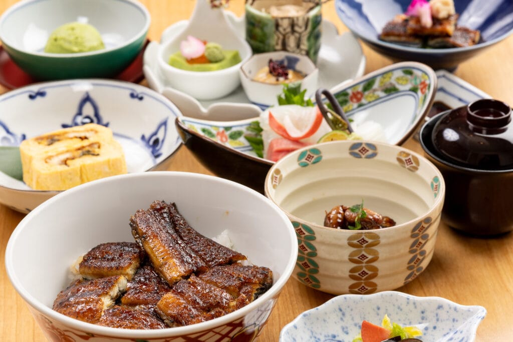 白焼き、肝焼き、うざくなどうなぎを知り尽くした職人が織りなす、うなぎのフルコースでございます。